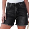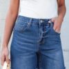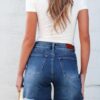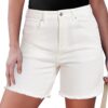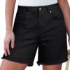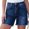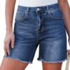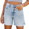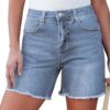 Women Trendy High Waisted Stretchy Denim Summer Raw Hem Mom Long Shorts Cutoff Jorts